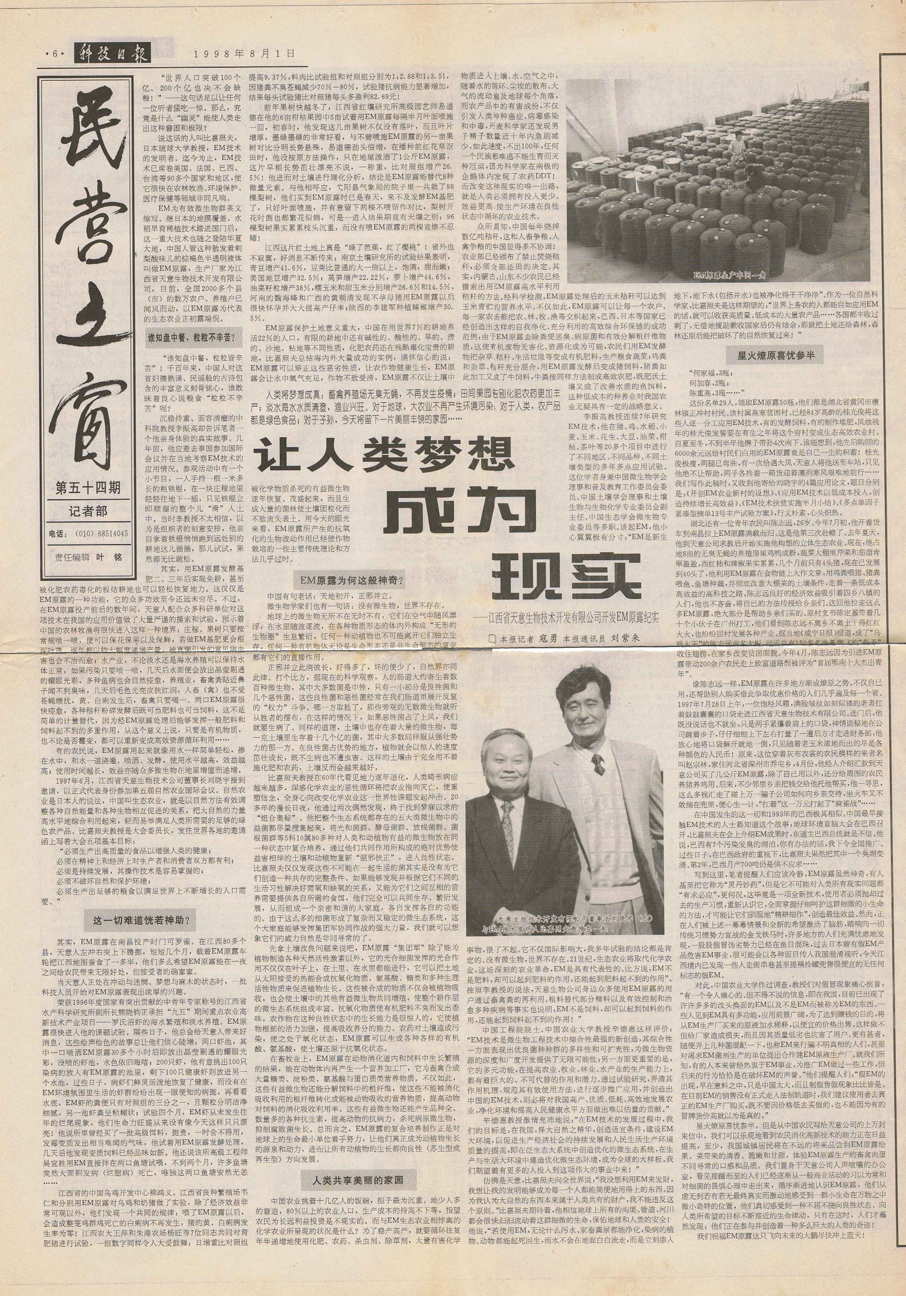 北京科技報:EM原露改變人類命運